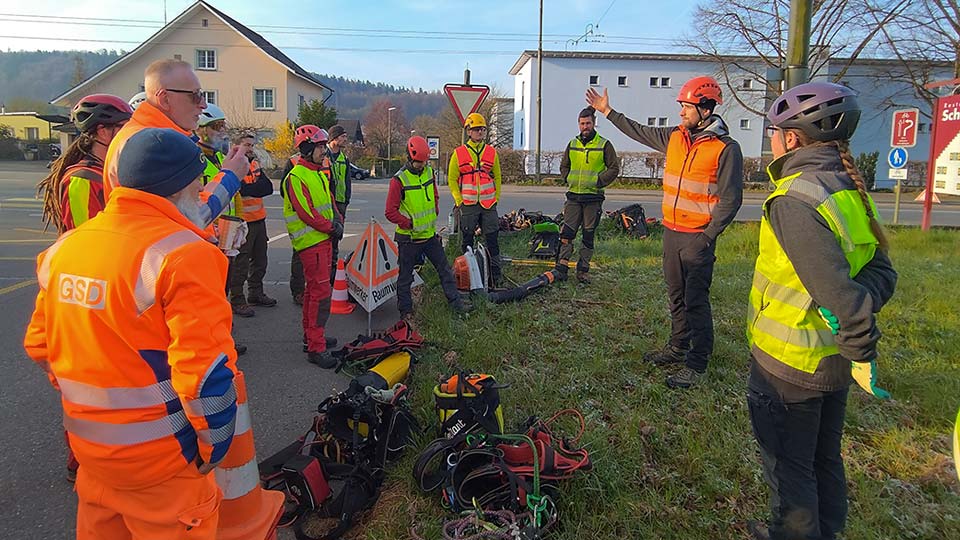 Aber auch für unsere Mitarbeiterinnen und Mitarbeiter am Boden ist es wichtig, sicher und geschult mit der Motorsäge arbeiten zu können.