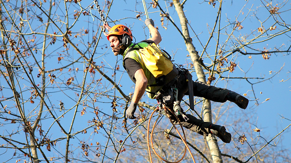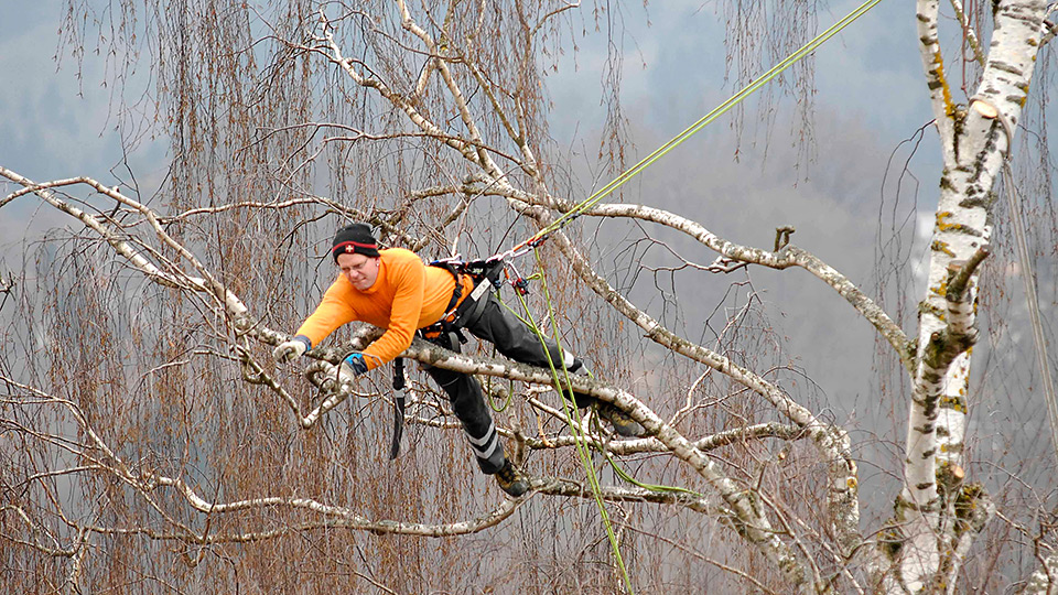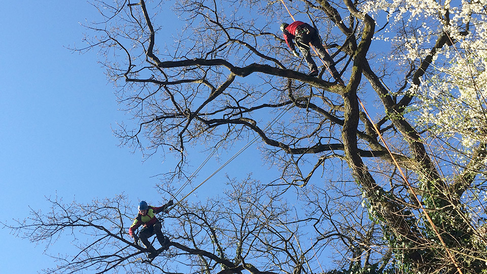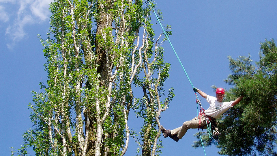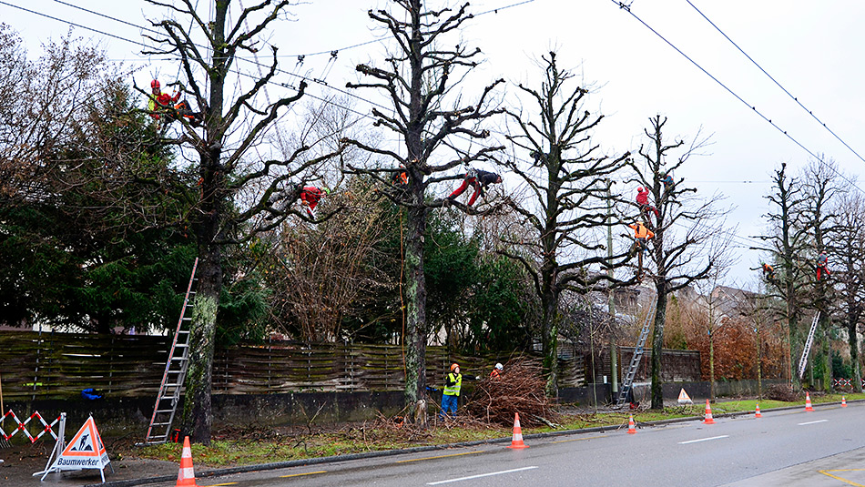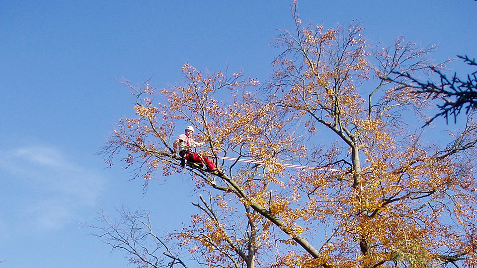 Bei älteren Bäumen können baumpflegerische Massnahmen notwendig sein, um die Verkehrssicherheit zu gewährleisten oder um ihre Grösse und Form den jeweiligen Gegebenheiten anzupassen. Die dabei zum Einsatz kommende Doppelseiltechnik ermöglicht eine sichere, effiziente und baumschonende Ausführung der Arbeiten.
